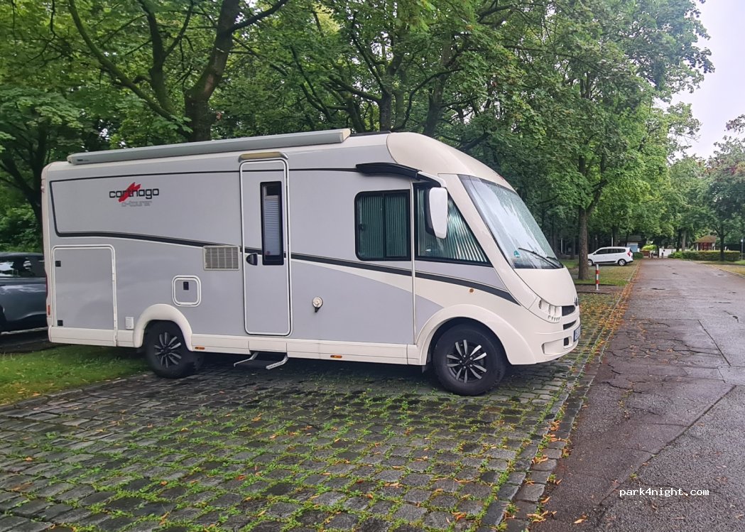 Estacionamiento ideal para pasar la noche o visitar la ciudad.Junto a la entrada del zoo en una zona verde con árboles.En los estacionamientos laterales entran Acs y campers de hasta 7 metros.El autobús 32 pasa cada 12 minutos y te deja en el moritzplatz (centro ciudad ) en 10 minutos.