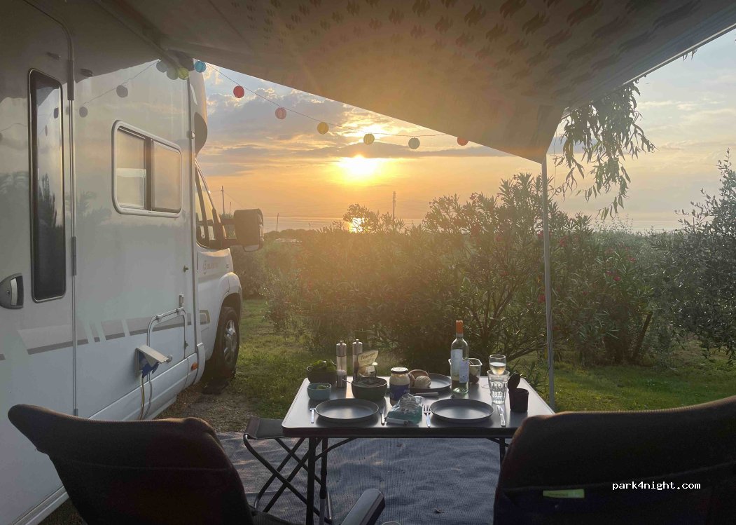 bel posto tra ulivi e vista lago. Andrea molto gentile . strada pedonale che collega in 15 min a piedi Lazise. 34 euro un giorno e una notte ma tutti i servizi disponibili , bagni, docce , zona piatti e panni tutto riscaldato. unica nota scarico acque nere solo con cassetta e grigie con bidone. noi siamo stati bene!