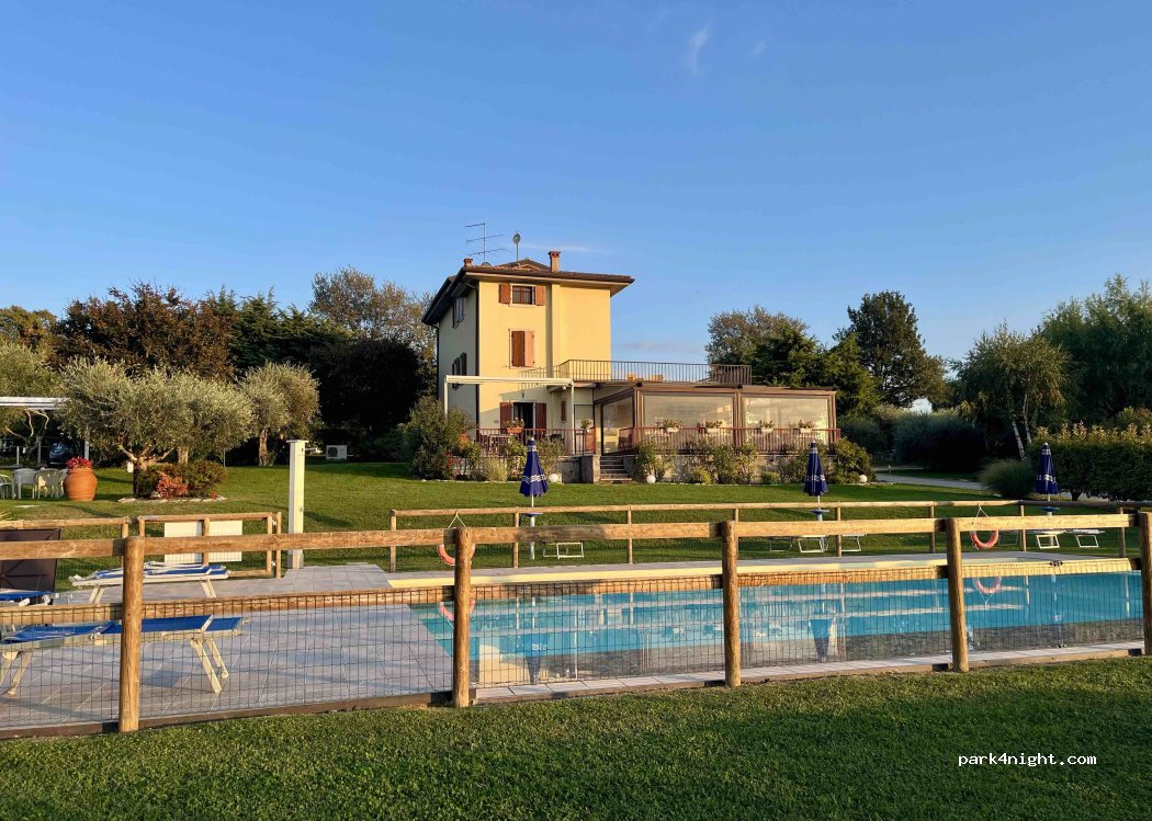 Dispone di 10 piazzole. Tutte le piazzole sono facilmente agibili dotate della colonnina per l’energia elettrica privata e attacco per l’acqua.Servizi igienici con wc, docce, lavandini. All’interno dell’Agriturismo non sono ammessi animali. Con piscina.Non è proprio sul lago