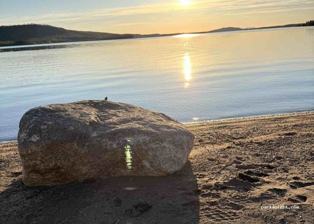 Spot right next to a lake with beach. Very calm. 100 m from some houses. No services.