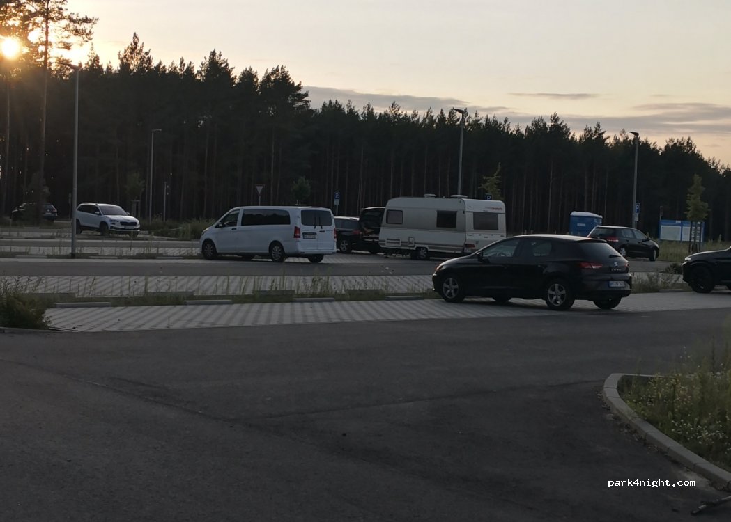 Der Parkplatz ist Nachts beleuchtet. Habe mich auf den Rasen gestellt um schlafen zu können. Parkautomat war kaputt und die Toiletten leider außer Betrieb, die Stadt ist aber informiert.