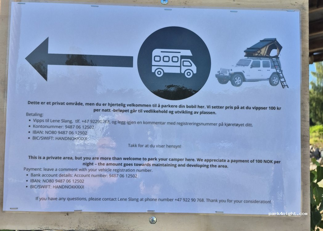 Magnifiquement idyllique endroit juste sur le fjord surplombant l’autre côté de la rivière (déjà la Norvège). Très calme Nous y sommes aussi restés pour la nuit. Aucun service.