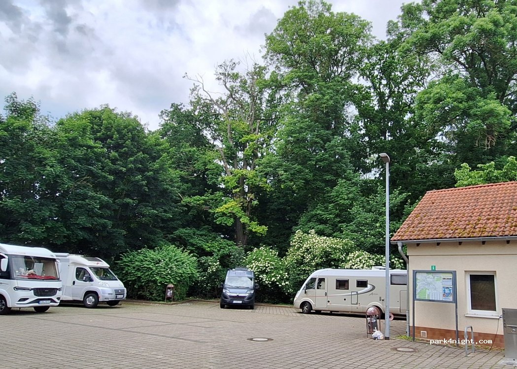 Nice overnight stop on a main road, but quiet at night (stayed Friday to Saturday). There's a Supermarket with bakery (opens at 5 am) across the road. No toilettes, but the bakery has one. 10 minutes walk to Sonderhausen's historical town centre.