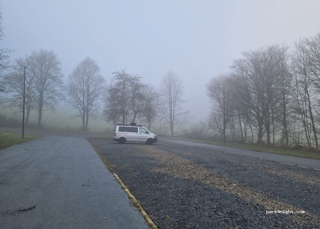 Eine ruhige Nacht auf dem großen Parkplatz verbracht, umgeben von Bäumen und Feldern und der Hennesee in wenigen Schritten erreichbar, perfekt. Hat mir gut gefallen und es wird nicht die letzte Nacht auf dem Platz gewesen sein. Wenn man sich die richtige Ecke sucht, ist der Boden auch recht gerade, habe in der obersten Reihe gestanden.