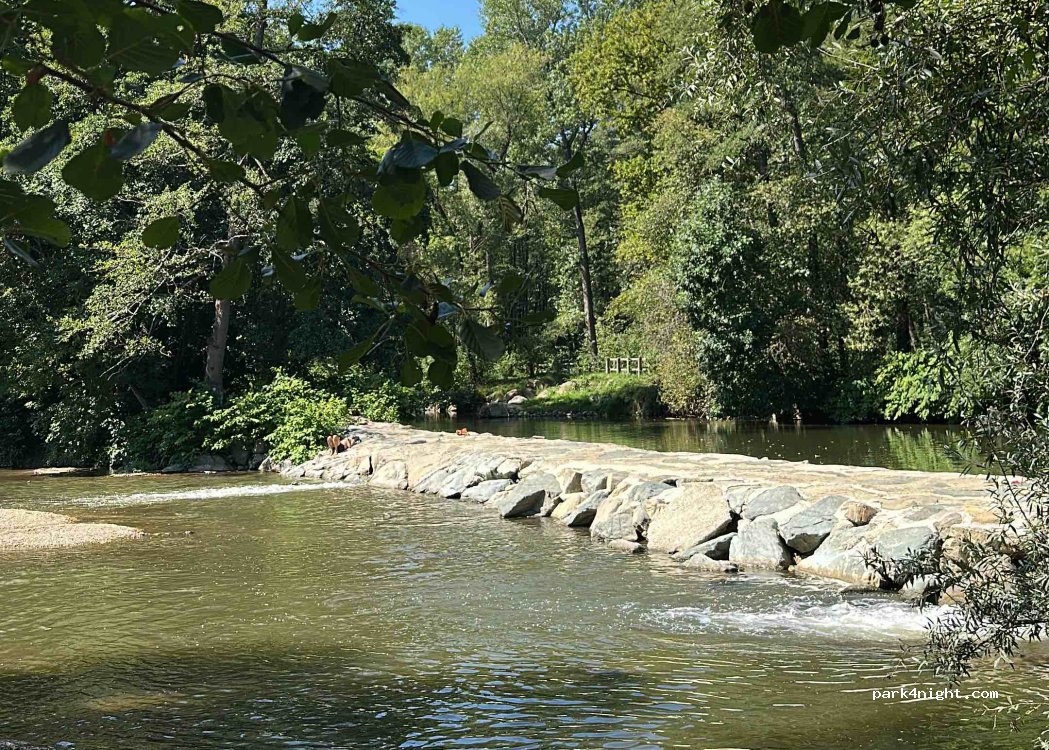 Der Ort heißt 'steinerne wehr' und ist total super! Hunde sind auch im flussbad zum schwimmen erlaubt aber nur auf Teilstücken des Bades bzw im Fluss!