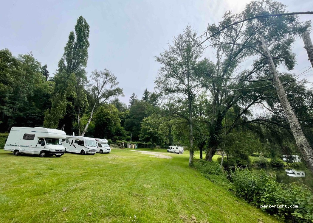 Super endroit à coté de la riviere sur herbe à l'ombre. Eau pour remplir mais pas de vidange. 5 euros la nuit.