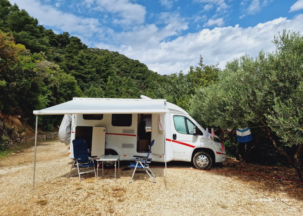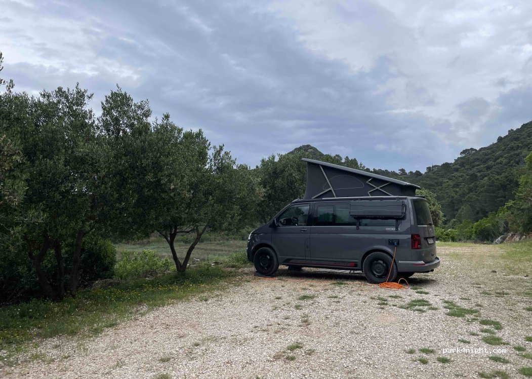 Beau camping près d’un petit port. Route difficile d’accès depuis blato mais ça passe (camper de 6m) pour l’accès au parc , il y a ensuite une piste pour y accéder. Propriétaire très gentille et accueillante