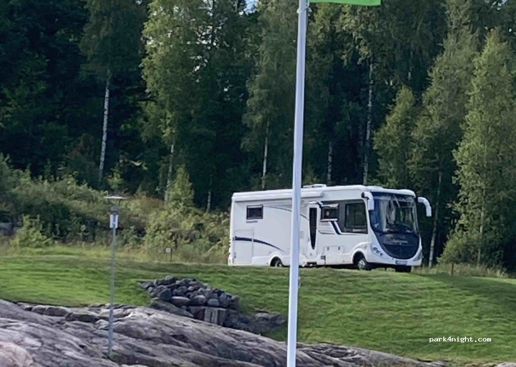Great place to park with a view of a beautiful lake. Behind is a forest! This is a beautiful part of Sweden to discover! There are 4 electricty connections for up to 16 amperes! To pay you go to the info board and follow instructions! You need cash to pay or by Swish. Place receipt in window and money in the black box! There are actually 2 more electra connection at the end to the left!!