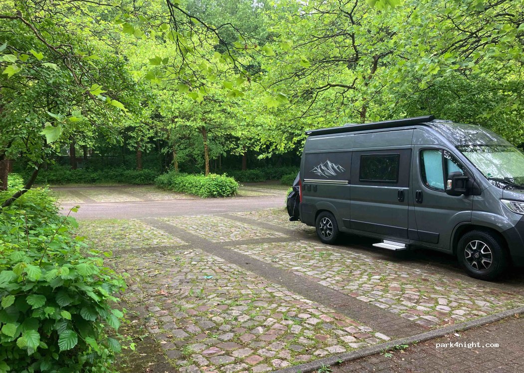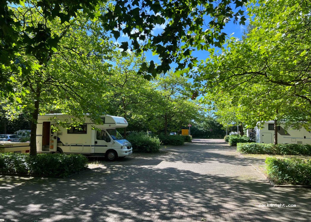 parking semi ombragé, endroit tranquille, proche Ubahn zone B vers hambourg 10 min à pied, il y a un lac pas loin aussi pour aller se promener courir ou baignade. Proche commodités. Pour dépannage, il y a de l’eau dans le cimetière à côté.