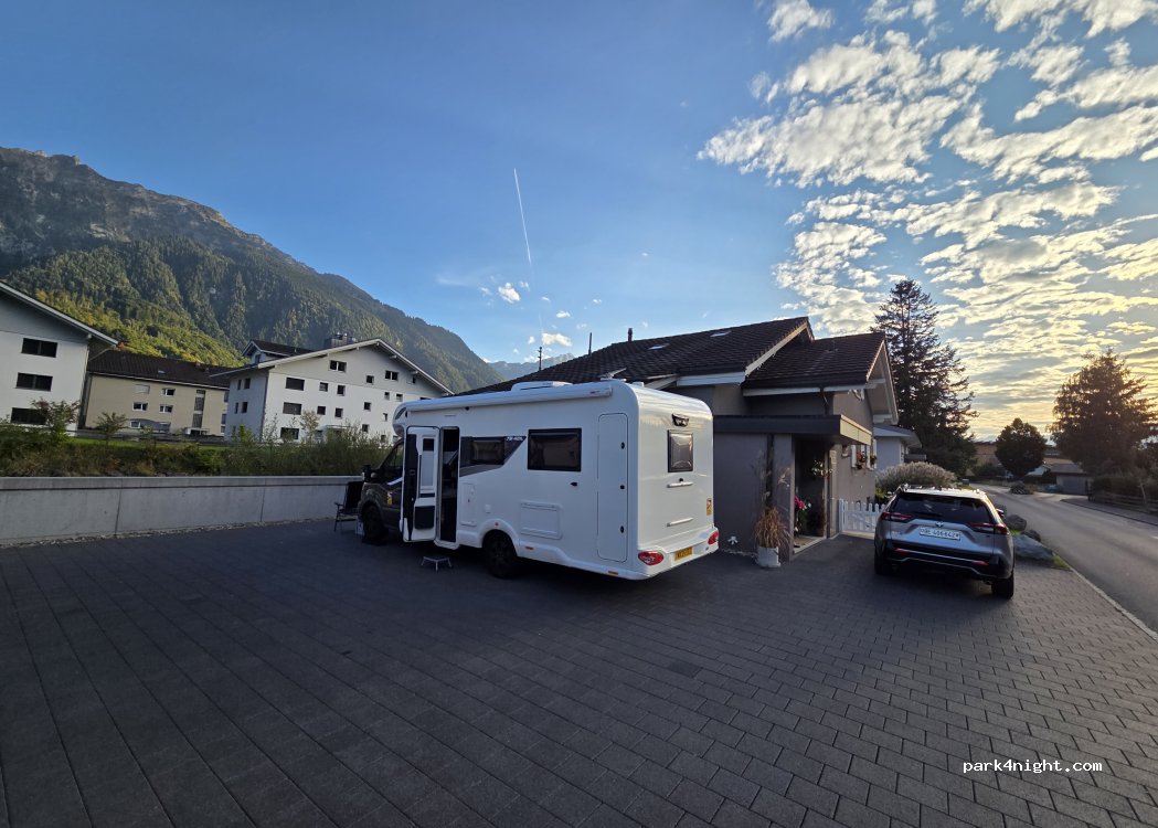 To add to our earlier comment, we parked up when the owner was not home, we were a little apprehensive about staying on someones driveway but we were late and didn't really have any other choice. We needn't have worried. A quiet nights sleep with lovely views of the mountains, and we just paid out CHF 25 in the morning. You could also just post the money in the letterbox. A great place to base yourself for exploring the area. And a reasonable price!!