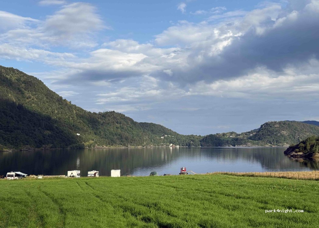 Situation exceptionnelle tout au bord du fjord. Vous regardez vers l'ouest, donc magnifique coucher de soleil si le temps est beau. Descente parfois impressionnante par un chemin assez étroit depuis la route, donc attention! si votre camping-car est un peu long. Le nôtre, 8 m., est passé sans trop de problème. Accueil familial très sympathique. Un seul sanitaire (WC douche) très correct.