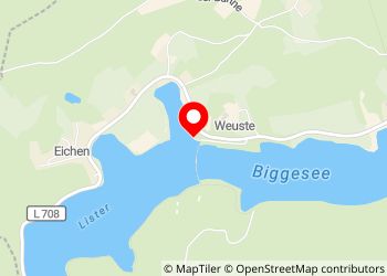 Free parking for one night. Located directly on the Listertalsperre. Nice view, street nearby you hardly hear at night. Small seating.