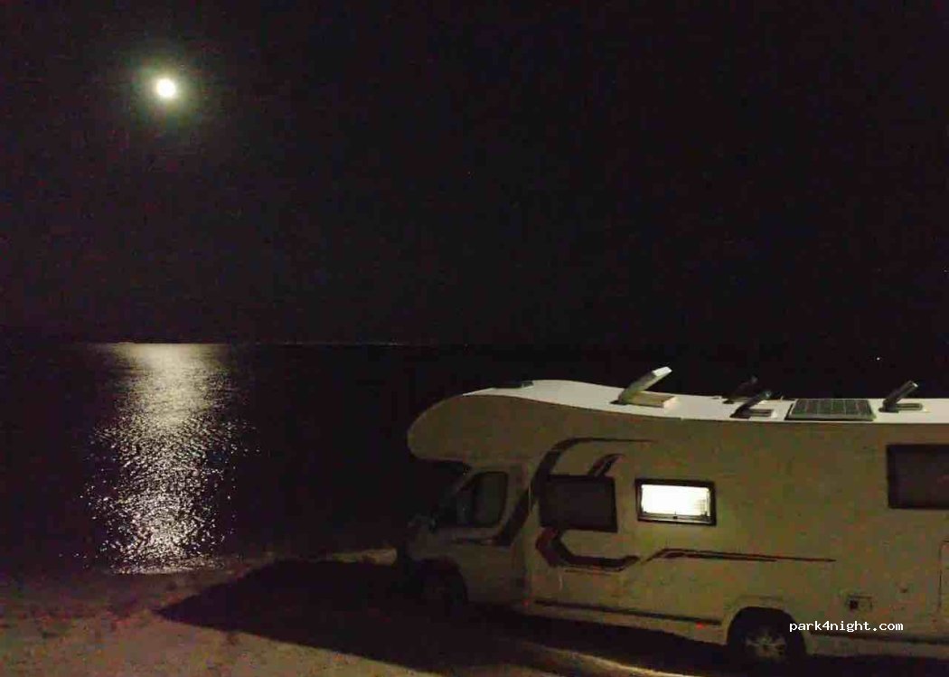 Ruhiger und sauberer Parkplatz mit direktem Zugang zum Strand Wir verbrachten eine Nacht hier und haben uns sehr wohl gefühlt. Die Straße war für uns mit unserem Wohnmobil (6,30 m) kein Problem jedoch standen wir etwas schief.