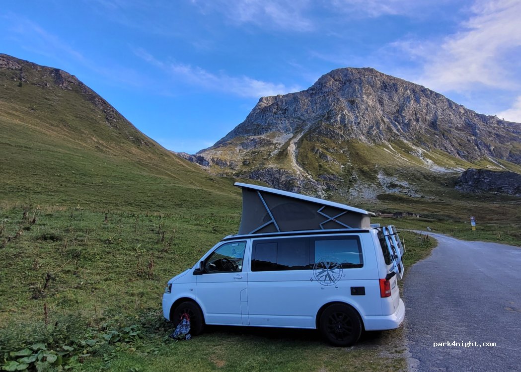 Parking de randonnées, il vaut mieux attendre la fin de journée pour s'installer tranquillement. très beau cadre avec petit ruisseau et les marmottes.
