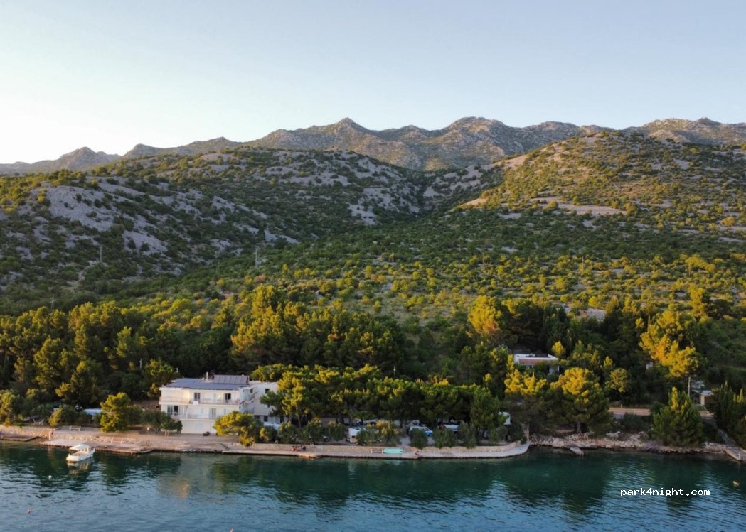 Bella area camper pianeggiante su ghiaia, ombreggiata da alberi, circa 2x10 posti, dove in alcune piazzole è anche possibile montare le tende. Adatto sia a grandi squadre che a piccoli autobus. Servizi igienici moderni e puliti e cucina liberamente accessibile con frigoriferi, fornelli, piani cottura e ampi lavelli. Griglia disponibile. Un ristorante tipico locale (Appartamento Ante) è raggiungibile in due minuti a piedi. Al mattino arriva un camion della panetteria. Supermercato a circa 1 km (no marciapiede). Ingresso in mare possibile tramite diverse scale. Non per non nuotatori. I cani sono i benvenuti e alcuni sono anche presenti in loco. Il posto si trova proprio sulla strada costiera, di giorno il traffico è moderato (prevalentemente moto, camper...), la sera è molto tranquillo, almeno in bassa stagione. Il capo di solito è sul posto ed è molto impegnato a mantenere il posto. Se cerchi pace e tranquillità e preferisci i luoghi piccoli e familiari, questo è il posto giusto per te.
