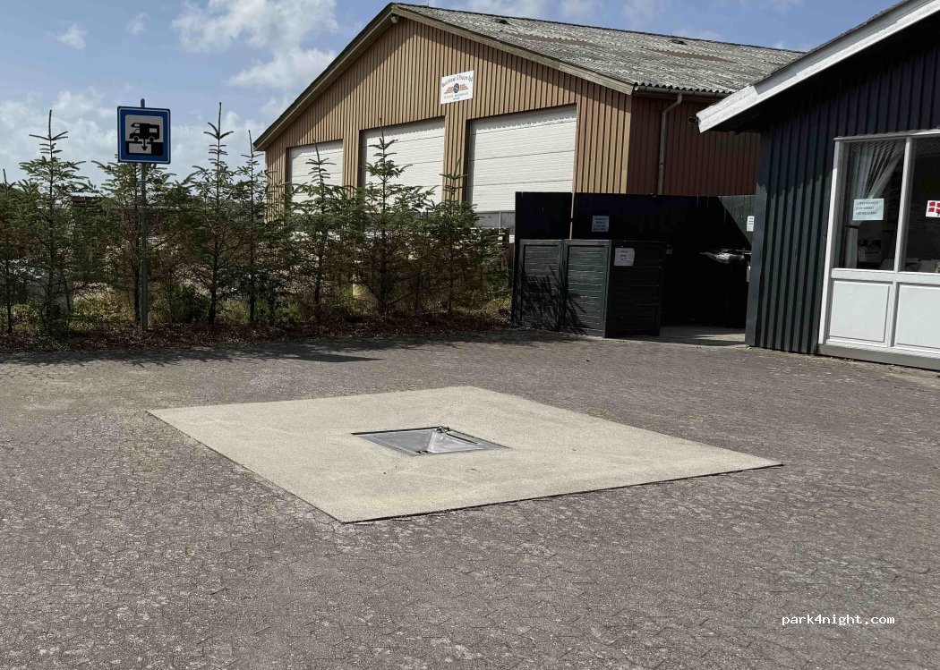 Arrivés le samedi 09/08 tard dans la nuit, avons pu nous installer sans problème sur cette aire très calme. Niels est venu nous voir le lendemain et a eu la gentillesse d’aller en voiture au magasin chercher l’ampoule qu’il nous fallait pour réparer notre phare. Toilettes et douches propres, petit salon de repos avec livres, jeux et brochures. Vidanges faciles et propres, tuyau sur place. Merci!