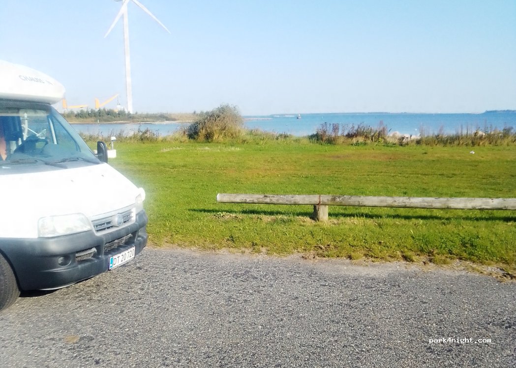 Nous avons passé une nuit au calme, avec une vue superbe. Sans utiliser l'eau et l'électricité, la place de parking pour la nuit (à gauche) est de 60 Kr toutefois. Prévoir du cash si vous ne pouvez pas utiliser mobilepay, passage possible du propriétaire le matin.
