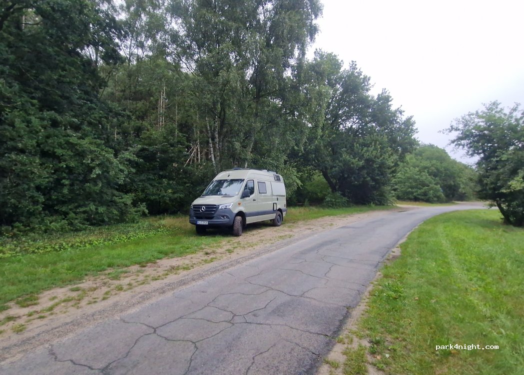 Small parking lot at the edge of the forest. From here you can go to the observation tower and enjoy the view over the landscape from above. A very quiet place for one night.
