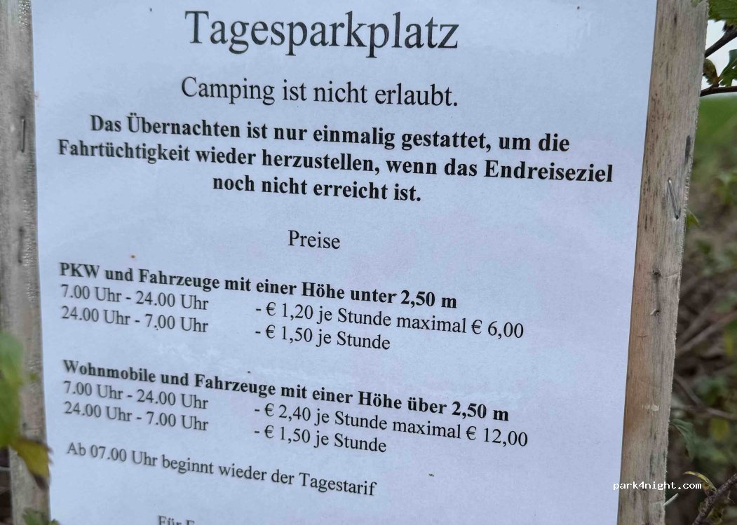 Kann die Angaben grundsätzlich bestätigen. Am 12.04. hing allerdings ein Schild "Übernachten verboten" am Automaten. Das kann man übersehen, wenn man direkt rauf fährt. Beim Bezahlen ist es dann schon zu spät. Wir haben uns etwas anderes gesucht.