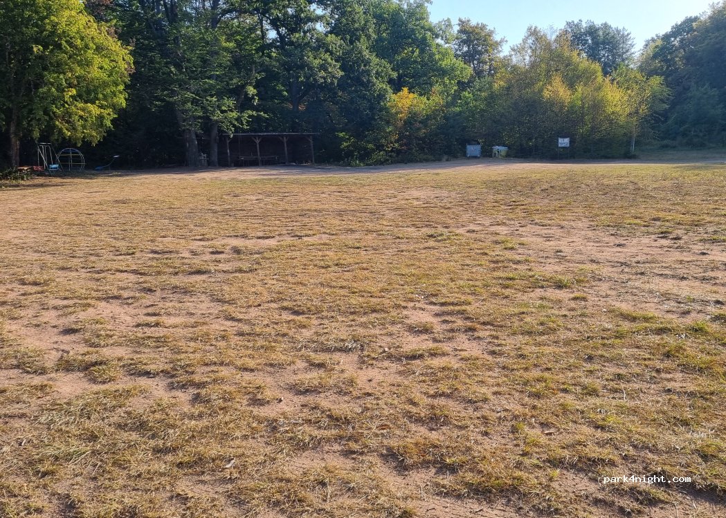 Eigentlich ein ganz schöner Platz, jedoch nicht am Wochenende zu empfehlen, da die Dorfjugend anscheinend häufiger ein Lagerfeuer mit Autoreifen macht. Schade.