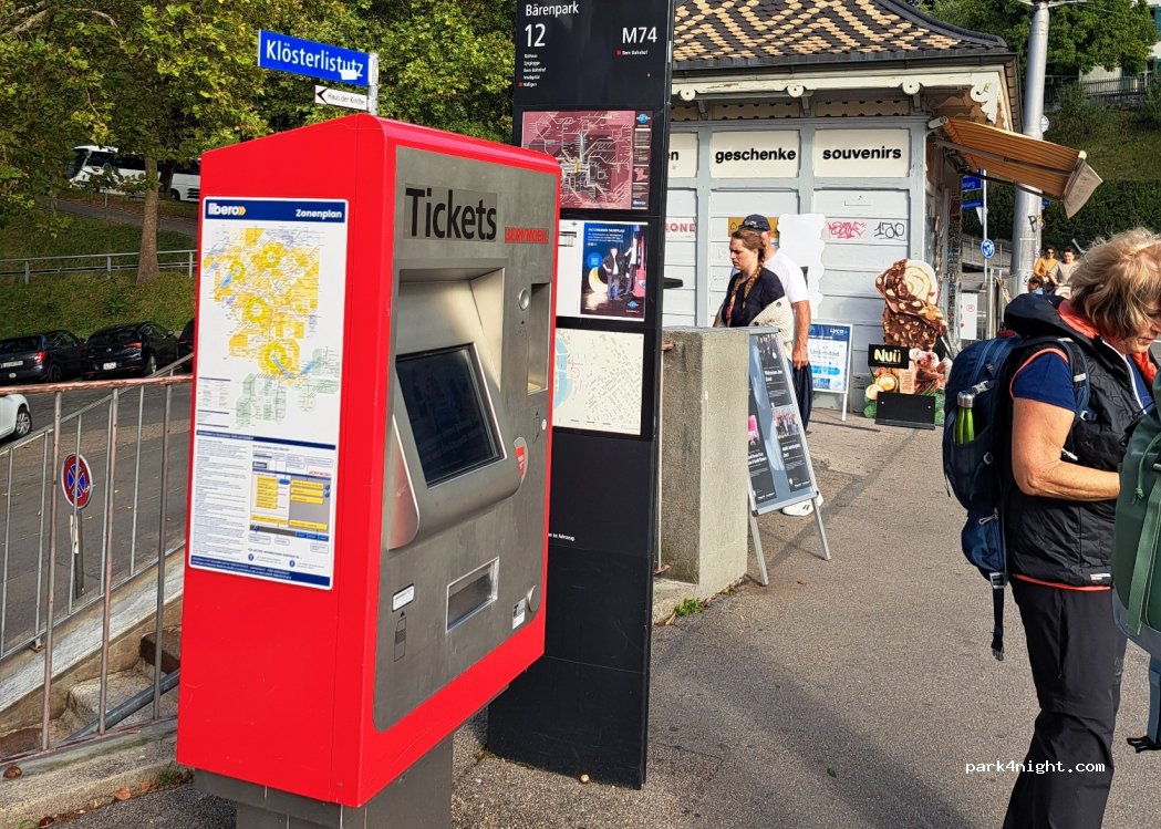 Buena ubicación para recorrer Berna, estacionamos nuestra camper de 7 metros sin problemas, compramos tiket en la máquina roja de al frente del baren park
