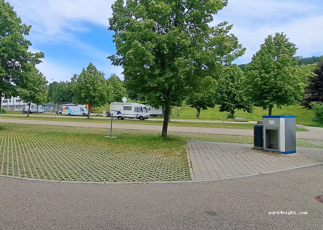 Estacionamiento con todos los servicios, aunque no todos los puestos tienen Luz. Junto al campo de futbol, y unas piscinas naturales. Ubicación ideal para visitar las cascadas de Triberg. La persona encargada, pasa mañana y tarde, se ha de pagar en efectivo, muy amable. Llegamos tarde y no quedaba sitio, pero nos dejó pasar la noche en un rincón y no nos cobró. Agua y Luz se pagan a parte.
