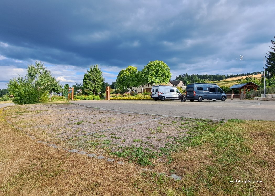 Schöner ebener Parkplatz direkt an einer Landstraße gelegen. Abends aber sehr wenig Verkehr (nicht störend). 5€ für die Übernachtung + 1€ für die Nutzung des ÖPNV (optional) sind bei einer freundlichen Anwohnerin zu bezahlen. Ver- und Entsorgung vorhanden, habe ich aber nicht genutzt. Gaststätte mit kleinem Selbstbedienungskiosk auf Vertrauensbasis direkt nebenan. Sehr zu empfehlen, gerne wieder.