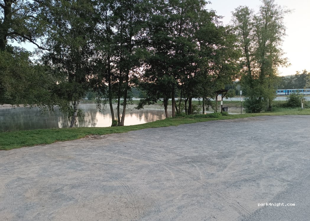 Krásné místo na okraji Plzně. Parkovací plocha pro cca 8 aut, u rybníka, se stolem a lavičkou, k dispozici WC. Nedaleko pump track. Vedle místa vede silnice a vlakové koleje, zřejmě frekventované, o víkendu v noci klid.