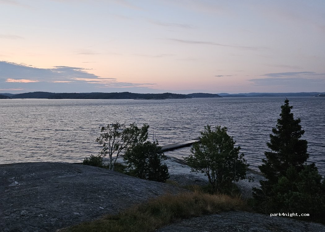 Mit Van oder Dachzelt ohne Strom empfehle ich den kleinen Platz am Ende an der Badestelle. (300kr) Siehe Fotos rotes Kreuz. Hunde am Strand nicht erlaubt, man kann aber hier oben raus gehen und kommt direkt an den Felsen und ein Stück weiter auch ans Wasser. Platz hat 90% Dauercamper mit genau diesem „Charme“ … Musikboxen unterm Arm und Mopeds …