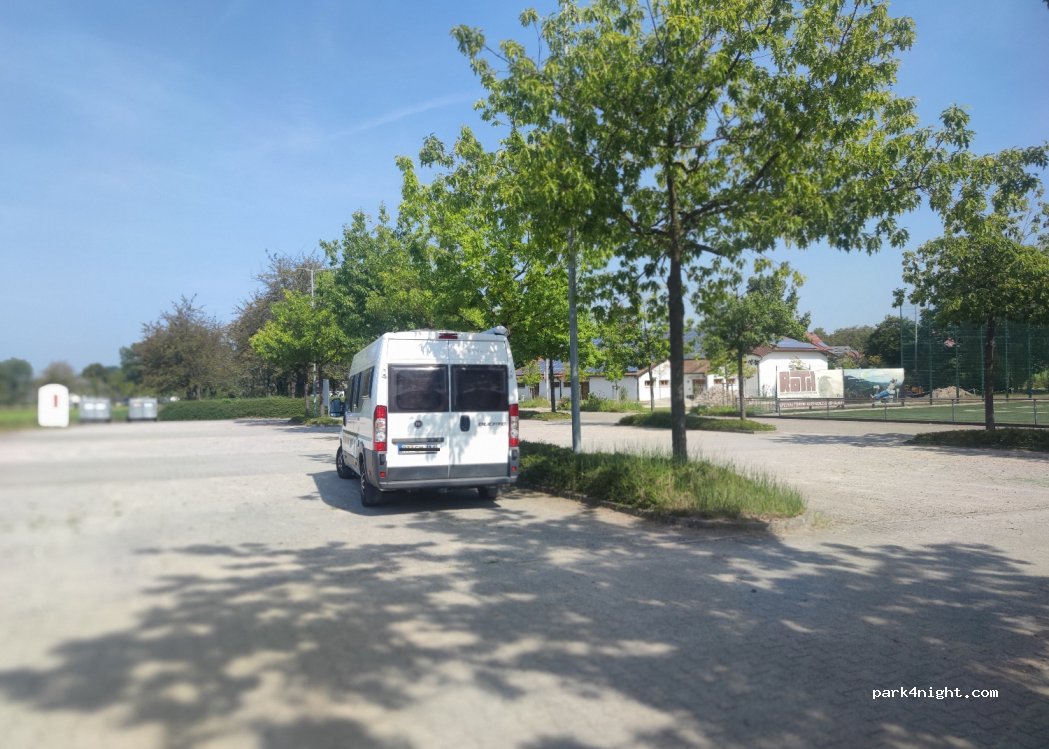 An einem grossen Vereinssportplatz am Ortsrand, wir waren Freitags dort da war es ruhig. Leider war der Stromanschluss kaputt und teilweise Bauschutt und Baustellenutensilien abgestellt. Wir haben uns nicht willkommen gefühlt und sind zu einem anderen Stellplatz gefahren.