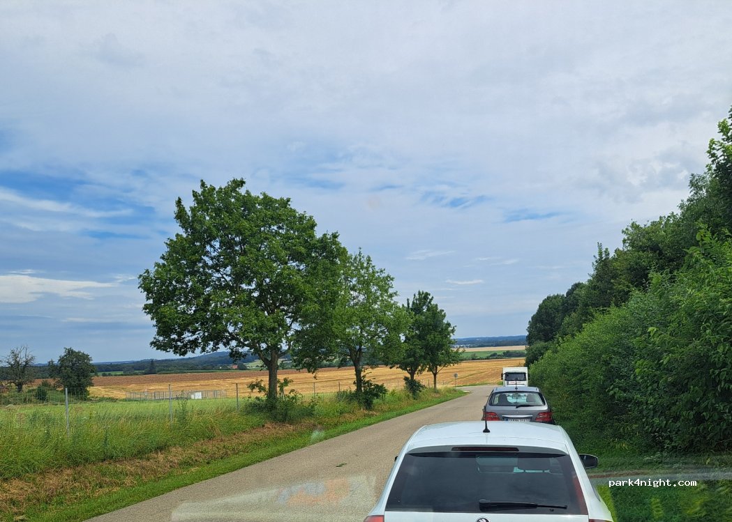 Park und Mitfahrparkplatz direkt neben der Autobahn. Gegenüber ist ein Bauernhof und Felder. Am Straßenrand Längsparkbuchten für PKW, wo ein größeres Womo über zwei Stellplätze gestellt werden müsste. Autobahn überraschend wenig zu hören, da durch einen Erdwall abgeschirmt. Keine weiteren Ver- oder Entsorgungsmöglichkeiten.