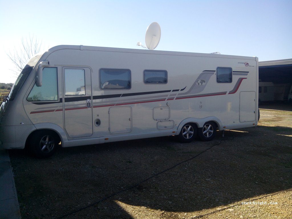 Aire privée très calme, environnement campagne, pas de bruit de route. Trop loin de Séville pour y aller à vélo. normalement fermée le samedi à partir de 14h, mais le propriétaire nous a très gentiment ouvert ce soir ainsi qu'à 2 autres CC arrivant plus tard. Attention fermé le dimanche. On obtient un badge pour sortir et rentrer à notre guise. Horaires différents de ceux indiques