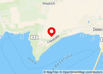 Parking public (gratuit), juste en face de l'hôtel Haus Delecke. A environ 20m au dessus de la Seestrasse. Parking calme avec grande pelouse avec banc de pique-nique. Réseau G4 disponible (qualité moyenne) Env. 50 m de la rive du lac et à seulement quelques centaines de mètres du mur du barrage. Au barrage, il y a des toilettes propres. Heures d'ouverture 10h - 18h.