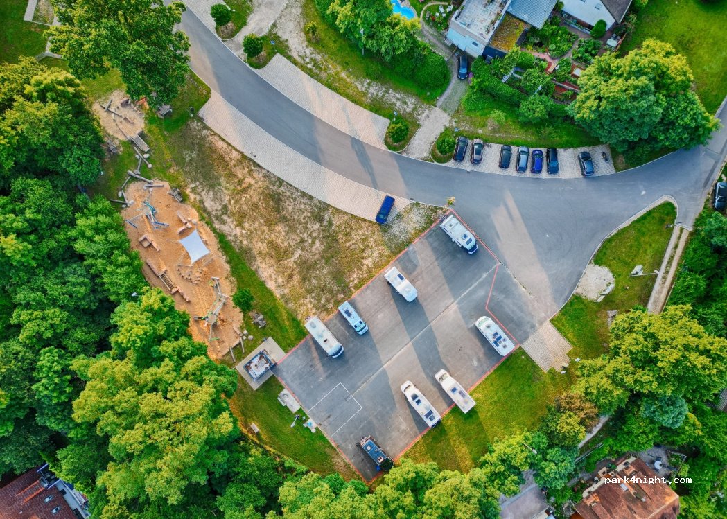 Area tranquilla, silenziosa e rilassante. Per i bambini è l'ideale grazie al parco accanto. Paese grazioso, vale la pena fare una bella passeggiata al mattino e visitare il castello. Al momento lo scarico acque nere e il carico è fuori uso ma l'efficienza tedesca lo renderà presto di nuovo disponibile. Grazie alla comunità per la possibilità e l'ospitalità. Super raccomandato.