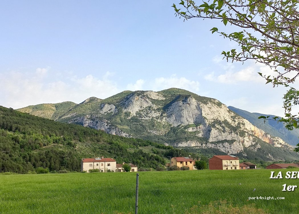 Lloc molt tranquil al costat del càmping,sense hombra,(els arbres són petits encara).A falta de que conectin la llum.El poble molt maco amb bars, restaurants i botigues d'embotits boníssims.A 30-45min d'Andorra.