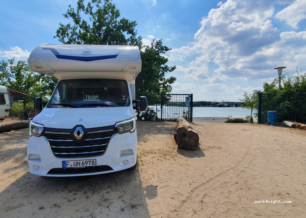 Ich glaube viele verwechseln diesen Baggersee Parkplatz mit einem Campingplatz, deswegen die schlechten Bewertungen. die Stadt bietet zu einem Sportpreis von 17Eur inkl. Eintritt für zwei Personen an zwei Tagen von 08:00 bis 11:00 des Folgetages einen Stellplatz direkt am See an. Dementsprechend ist die Zufahrt an die Öffnungszeiten des Sees(8:30-20:30) gebunden. Das ist unschlagbar und 5* Wert!