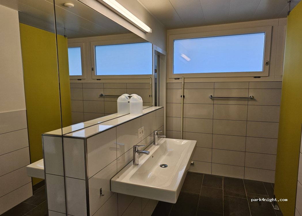 Very friendly welcome. We arrived without a reservation and were easily accommodated. Clean and modern facilities with the option of joint shower and toilet rooms. Great location. 44CHF for 2 adults and a van. Electric and drinking water included.