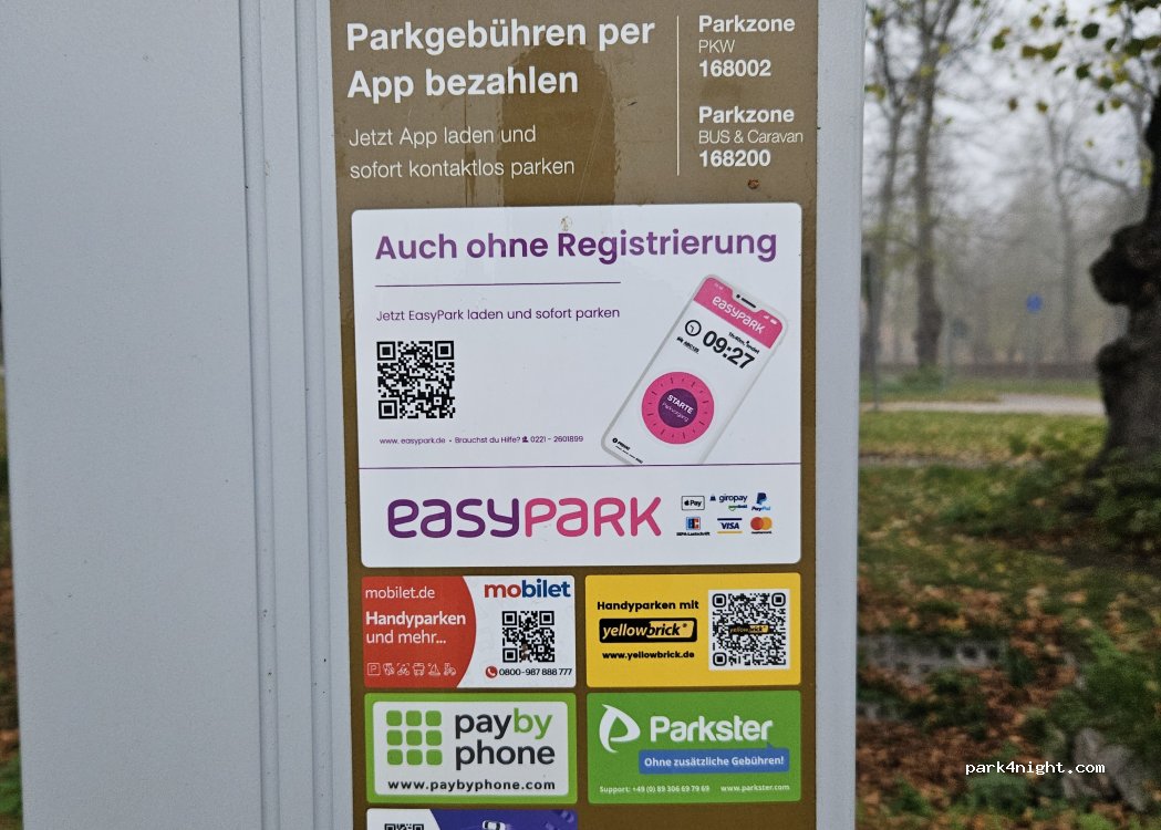 Für eine Nacht autark stehen kein Problem. Wir haben online mit easypark bezahlt. Gibt zahlreiche Anbieter auch ohne Anmeldung. Von daher sind Münzen nicht mehr das einzige Zahlungsmittel. Die Nacht war ruhig. Platz ist teilweise recht uneben.