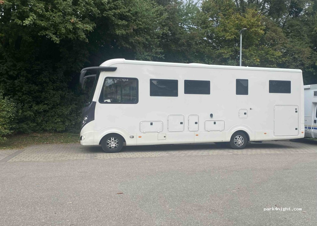Gut für eine Nacht. Erstaunlich ruhig und - zumindest in Februar - sehr leer. Die naheliegende Straße ist erhöht und mit Schallschutz. Ganz leichte Neigung der Parkflächen, so dass man ohne Keile auskommt. Bei den "See" handelt es sich um ein Wasserloch in Beton und Sand. Zumindest in Februar einfach furchtbar. Spazierengehen in den Kunstareal der ehemaligen Landes-Gartenschau ist möglich.
