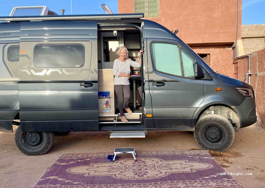 Op binnenplaats voor 4 campers, wij werden met 6-en geplaatst voor de volle prijs. Vooraf gevraagd of de spanning van elektra constant zou blijven, helaas. Koelkast op gas moeten zetten en elektra toch moeten betalen. Zaïd regelt van alles goed en snel, maar je betaalt meer dan de hoofdprijs. En de Berber-massage die hij aanbiedt….ik geloof niet dat hij het bij de onderbenen gelaten zou hebben.
