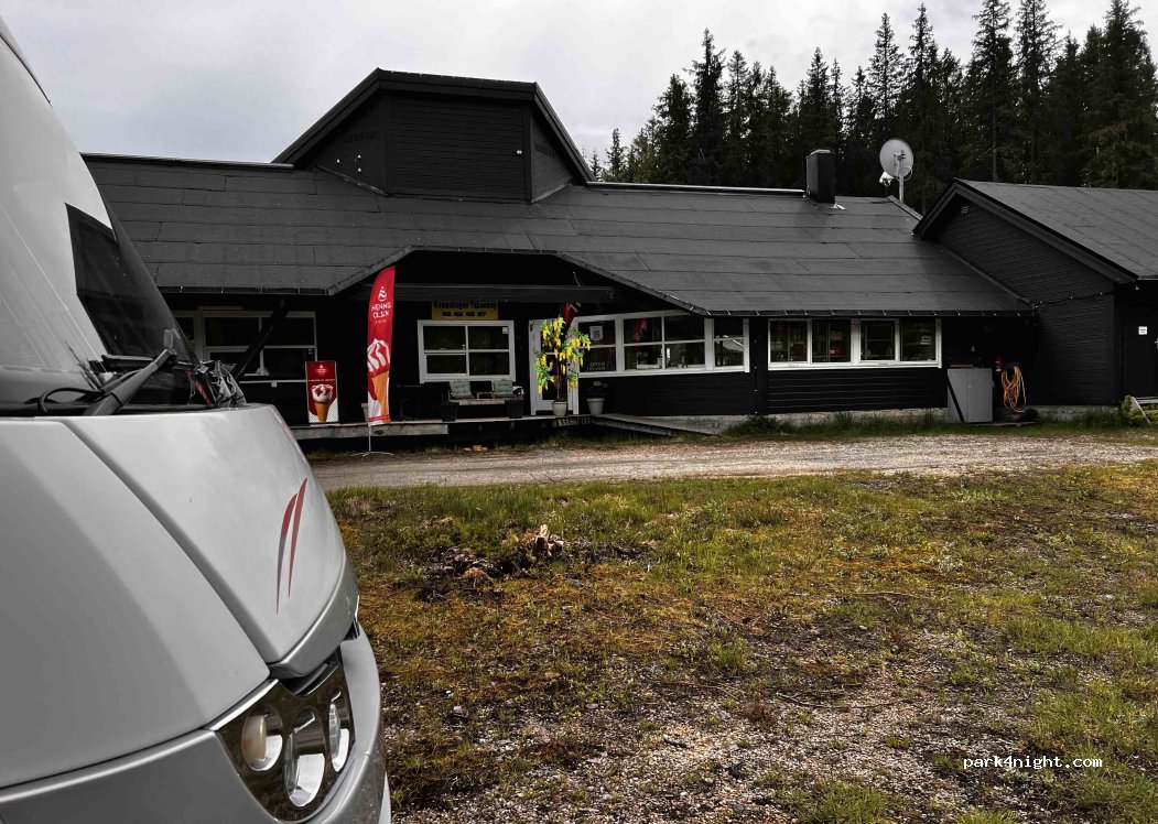 Ambiente: Null. Trostloser Schotterplatz neben der Straße. Aber: Die Straße stört nachts nicht. Sanitäre Anlagen sind ausreichend und sauber. Das Essen aus dem Restaurant ist gut und üppig (reicht für zweimal). 300 NOK incl Strom. Reicht trotz des tristen Graus für 4 Sterne.
