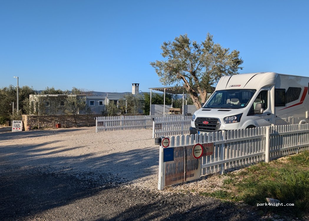 Kleiner aber feiner Platz mit nur drei geschotterten Stellplätzen und gedeckter Terasse. Alles sauber. Wurden von Dragan mit hauseigenem Honiggrappe herzlich begrüsst.