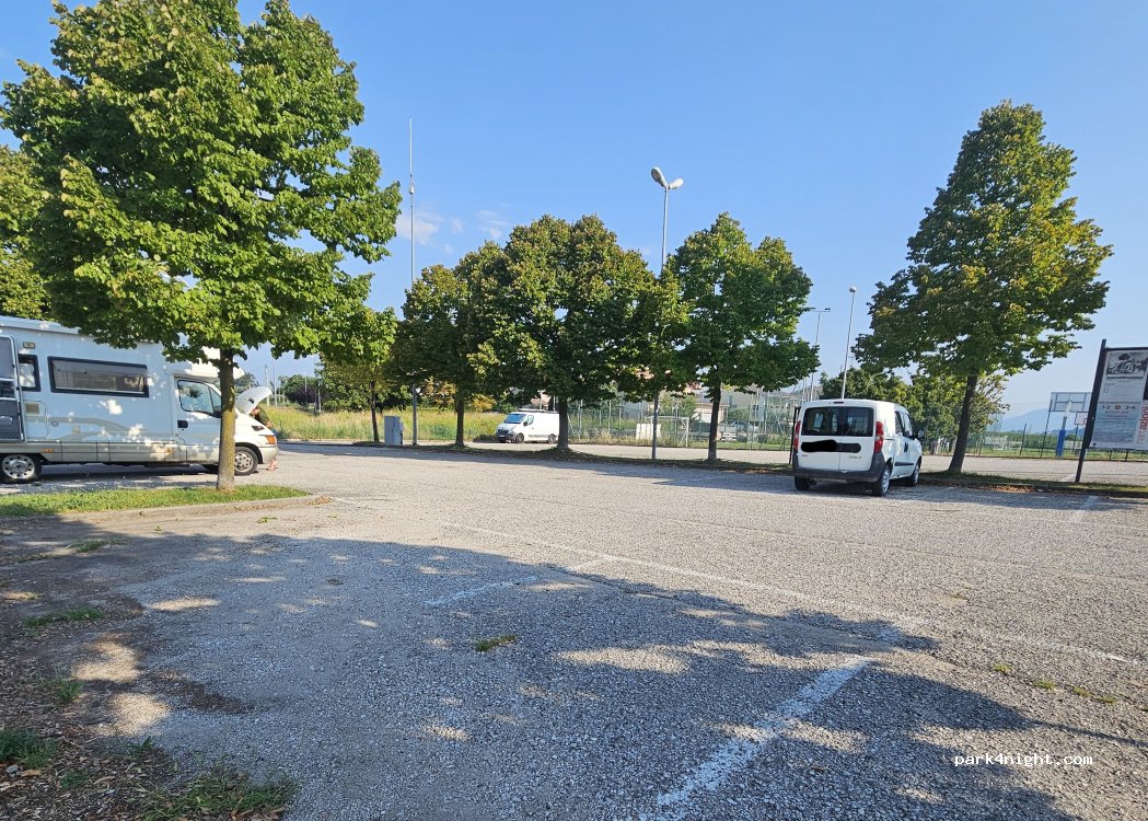 Parking, next to sports center, fairly quiet. Nice to sleepover before visiting Parco Natura Viva (zoo with safari)