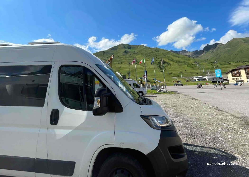 Alternativa discreta di parcheggio se l'area camper è piena. Utile comunque per sostare al Passo del Tonale