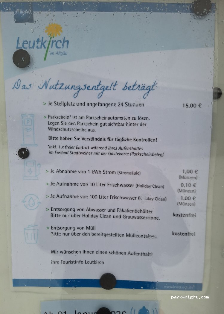 Super Stellplatz mit sehr großen Parzellen. Haben zuerst eine Nacht kostenfrei am Ausweichplatz geschlafen und sind am nächsten Früh umgezogen. 12€/Nacht inkl. WLAN und Eintritt ins Freibad (!!!). Ruhiger Platz und ins Zentrum 15 Minuten zu Fuß. Danke an Leutkirch für diesen Platz - wenn man das Freibad nutzt hat man ein unschlagbares Preis-/Leistungsverhältnis!