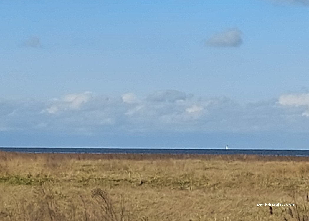 Pitch in front of the dyke with a view of the salt marshes and the Jade shipping channel. You will see well-maintained sanitary facilities, supply and disposal, which are included in the price. However, the pitch is very small. In the first row you only have a small distance to your neighbors. Since this season you will be assigned a numbered pitch, which you can also book online at Wangerland.de. The beach is 1.5 to 2 km away, depending on whether you want the dog beach or not. There is also a nudist beach.