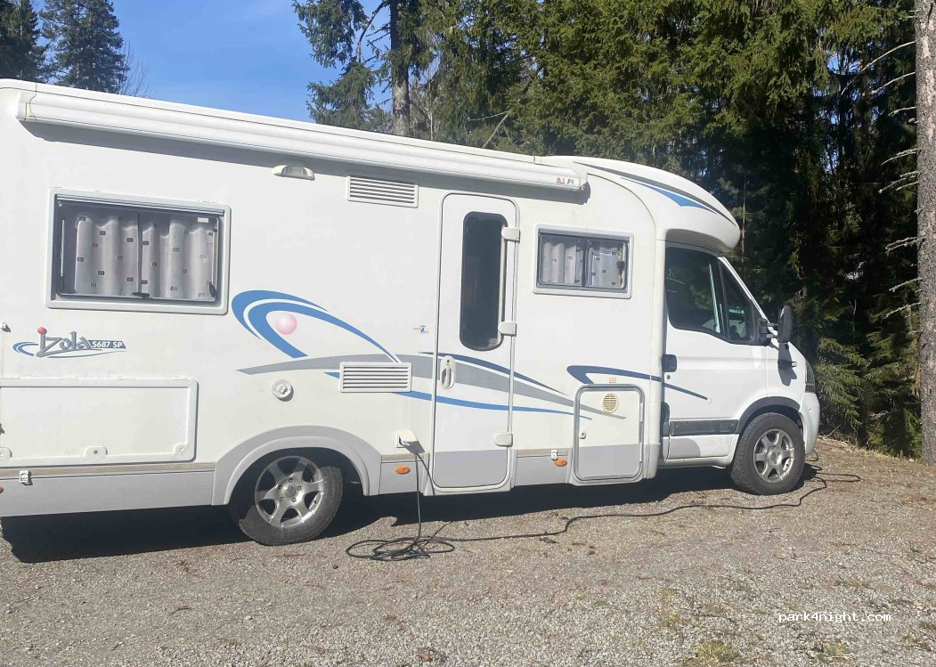 Rustige vlakke parking aan het begin van een mooie wandelroute. Mogelijkheid om via een app elektriciteit te nemen. Restaurant was gesloten. Rustige nacht gehad.