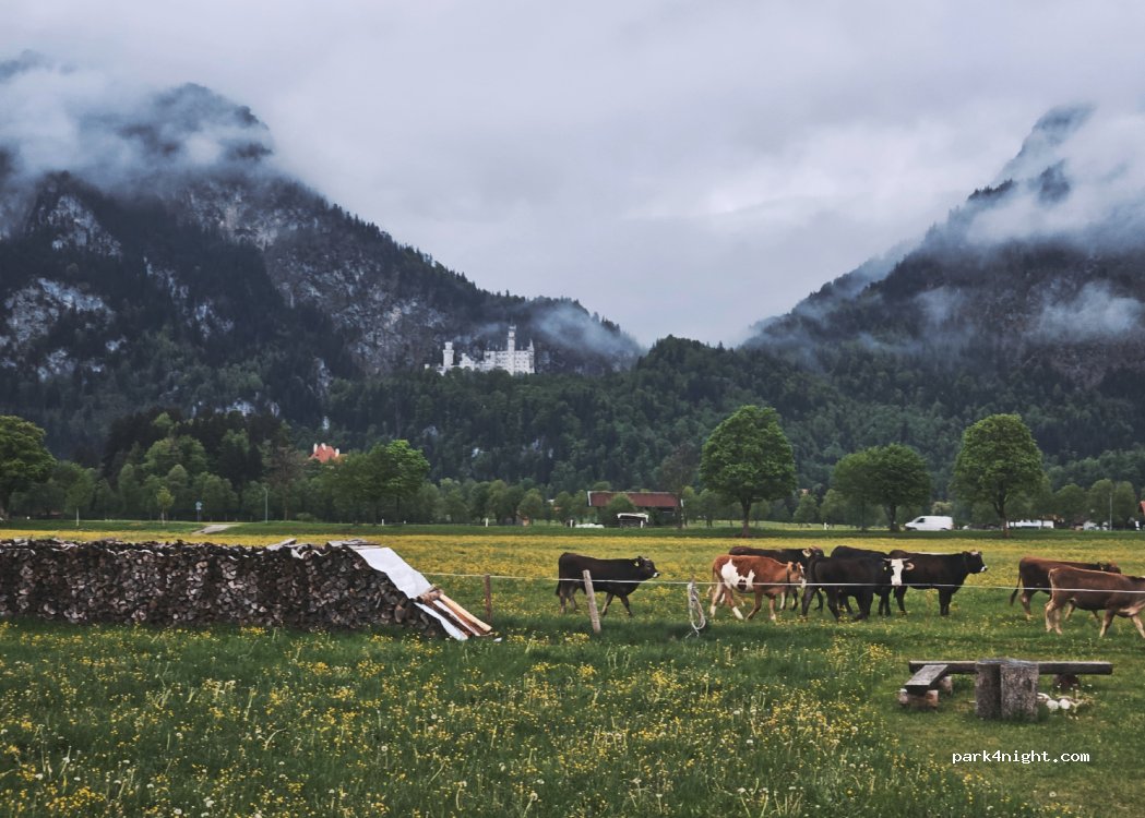 Ein wunderschöner Ort um zu übernachten mit einem herrlichen Blick auf die Berge und Schloss Neuschwanstein. Für zwei Personen 50€ für 2 Nächte und ist definitiv den Preis Wert. Sauberer Sanitärbereich und auch ein Ort zum Spülen. Wir kommen sehr gerne wieder!