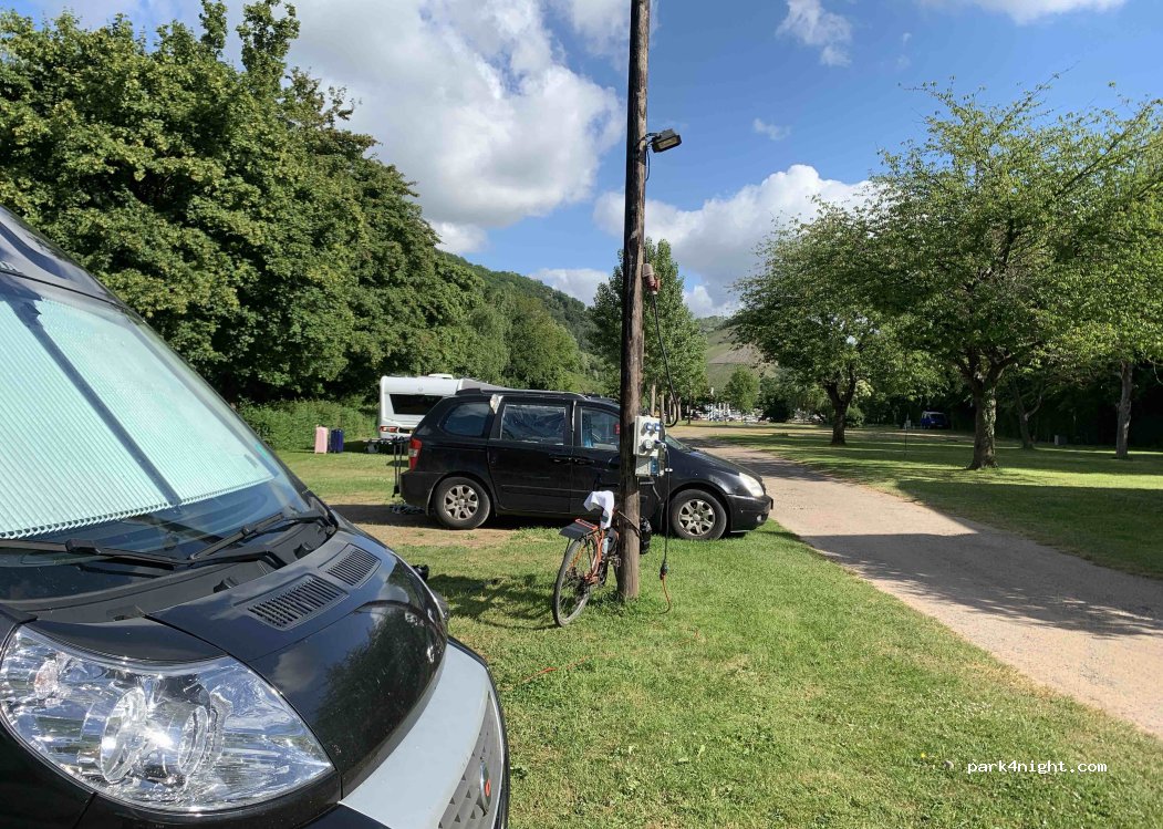Freundlicher Empfang, sehr saubere Sanitäranlage, mit Marina direkt an der Mosel. Wir hatten einen Stellplatz auf der Wiese, die meisten Stellplätze sind aber auf Schotter. Wir haben dort gearbeitet. Das WLAN hat zwar nicht funktioniert, aber der mobile Datenempfang war sehr gut.