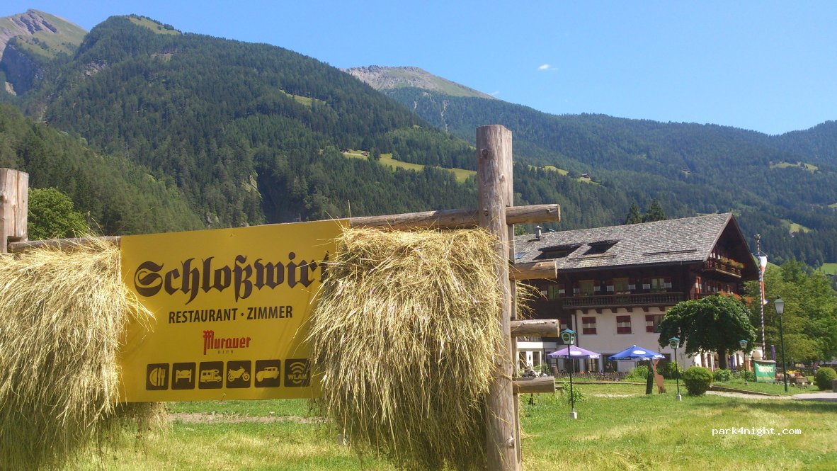 ... direkt neben dem Hotelrestaurant Schlosswirt befindet sich der Womo Stellplatz, naturbelassen, trocken und gut befahrbar, nette Betreiber, freundliche Begrüßung, hilfsbereit, und Tipps f. Ausflüge i. d. Umgebung, im Restaurant sehr gute Küche, Frischwasser u. Entsorgung vorhanden, ein separates Sanitärhäuschen i. d. Planung. Wir waren hier drei Tage, haben uns wohl gefühlt ...